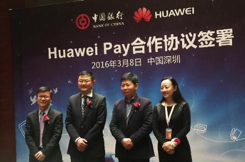 在过去一年中,华为在智能终端上的业务飞速增长,2015年智能手机销量超过一亿部,增长速度排名行业第一,全球市场份额排名第三。而就在今天中国银行总行网络金融部总经理郭为民携中行总行相关人员来到华为公司位于深圳的总部,与华为举行了Huawei Pay合作签约仪式。