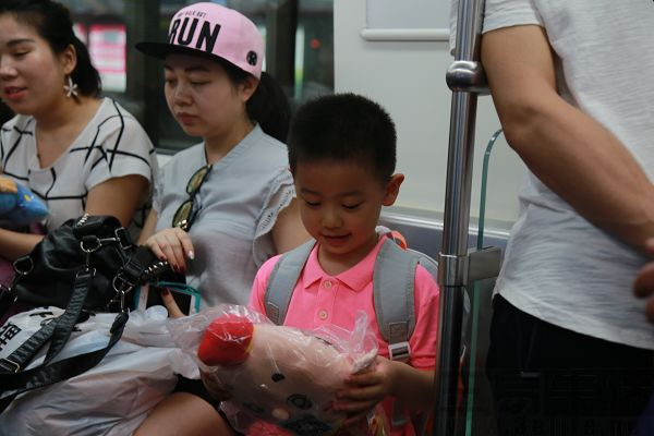 “妈妈,快看,这里有一个饼干警长娃娃”,昨日下午16时,刚在洪山广场坐上地铁2号线的小朋友欢欢惊喜地大叫了起来,他赶紧环顾车厢,发现坐椅上,防护栏上,到处都是饼干玩偶。随后,不少武汉市民在地铁车厢内,站厅内,闸机上,自助售票机上看到了好多戴着蓝色警帽的饼干警长玩偶,扫一扫玩偶身上的二维码,还能赢得免费游玩欢乐谷甜品王国的门票。