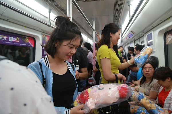 原来,这是武汉欢乐谷为5月28日全新亲子主题区开放做的预热活动。昨日下午,秉承呵护亲密,分享欢乐的公益理念,欢乐谷工作人员兵分两路,一路奔赴武昌片区的楚河汉街、洪山广场、中南路、光谷广场发福利,另一路工作人员则占领了汉口循礼门、江汉路等热门站点,在这些区域的车厢内、进出站口、候车区、上下扶梯口等人流量多的地方派发饼干警长玩偶,引导市民扫描二维码摇出免费门票,宣传即将盛大开放的全新主题区甜品王国。