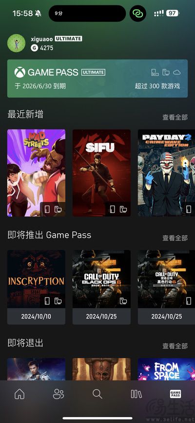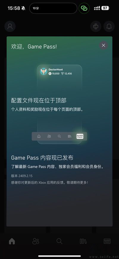 在此次更新后,Xbox应用中原有的账户功能被替换为“XGP”标签,可以方便玩家动态查看订阅情况以及到期时间,同时还会直接连接到XGP所提供的游戏内容。