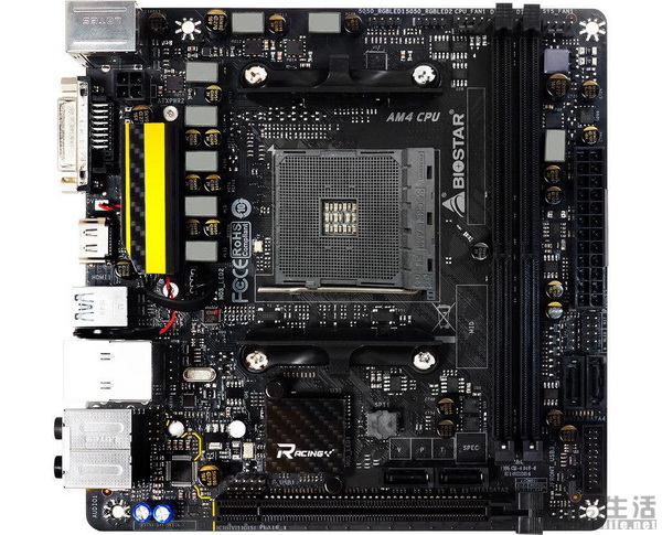 主板采用了黑金固态电容,供电稳定强劲的同时也更加耐用。2个内存插槽,最大支持DDR4-3200规格内存。扩展插槽也十分丰富,拥有4个 SATA 6Gb/s接口,1 个M.2 32Gb/s(PCI-E only)、1 个 M.2 6Gb/s (SATA only)接口,ITX规格也完全不缩水。