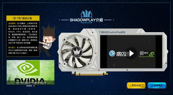 【影驰 GFE SHOW场】每月将举行游戏主题活动,俄罗斯2018世界杯刚刚落幕,本月(7月)的主题活动当属球类游戏,在【影驰 GFE SHOW场】中上传有关于球类运动的PC单机/网游相关的视频作品,具体游戏不限(例如:FIFA、实况足球、NBA 2K、街头篮球等),即有机会赢取千元大奖,用你的球技征服玩家,用你的操作燃爆社区,一球成名,就在此刻!