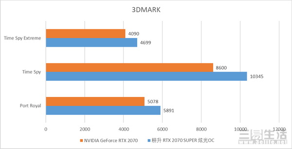 耕升RTX RTX 2070 SUPER 炫光OC在3DMark的测试中,有着非常不错的表现,无论是1080P、2K、4K还是新加入的光线追踪基准测试PortRoyal,耕升RTX 2070 SUPER 炫光OC都能交出一份高分答卷,而作为3DMARK酝酿已久的PortRoyal光追测试,更是结合了无数镜面效果,极具科技感,这是非RTX显卡所不可能达到的分数。