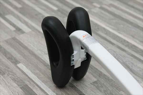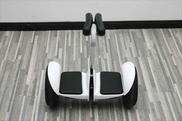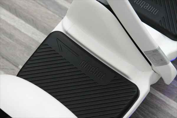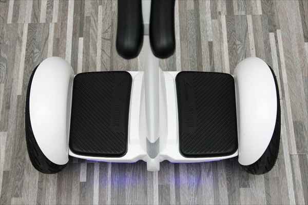 平衡车供使用者骑乘的部分,就是这两个硕大的踏板了。说“骑乘”不是太合适,因为中间的控制杆是用腿部夹紧来进行转向控制的,并不能真的骑在上面,小伙伴们使用中要注意喔!