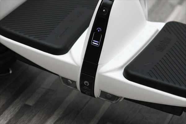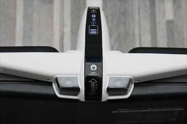 向上翻开充电口护板,就可以为平衡车充电了。从附赠的变压器体积和充电口的四针设计可以看出,九号平衡车的充电功率并不小。