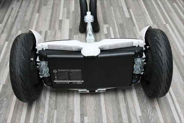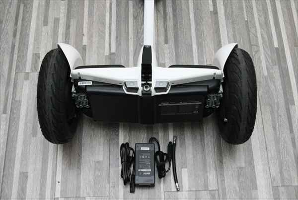 在平衡车底部,设计有电池组,九号平衡车的电池组是不能轻易拆卸的,当然这种设计对电池的寿命就提出了更高的要求,但同时也杜绝了电池组接触不良的危险。
