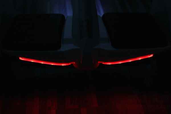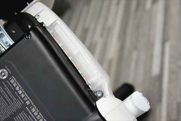 从刚才电池组的实拍图片中,相信大家已经注意到平衡车还有左右“尾灯”,这两条由多颗LED组成的尾灯可以变幻多种颜色、分别表示行车灯、驻车灯和转向灯(而且还是序列式的转向灯喔)。