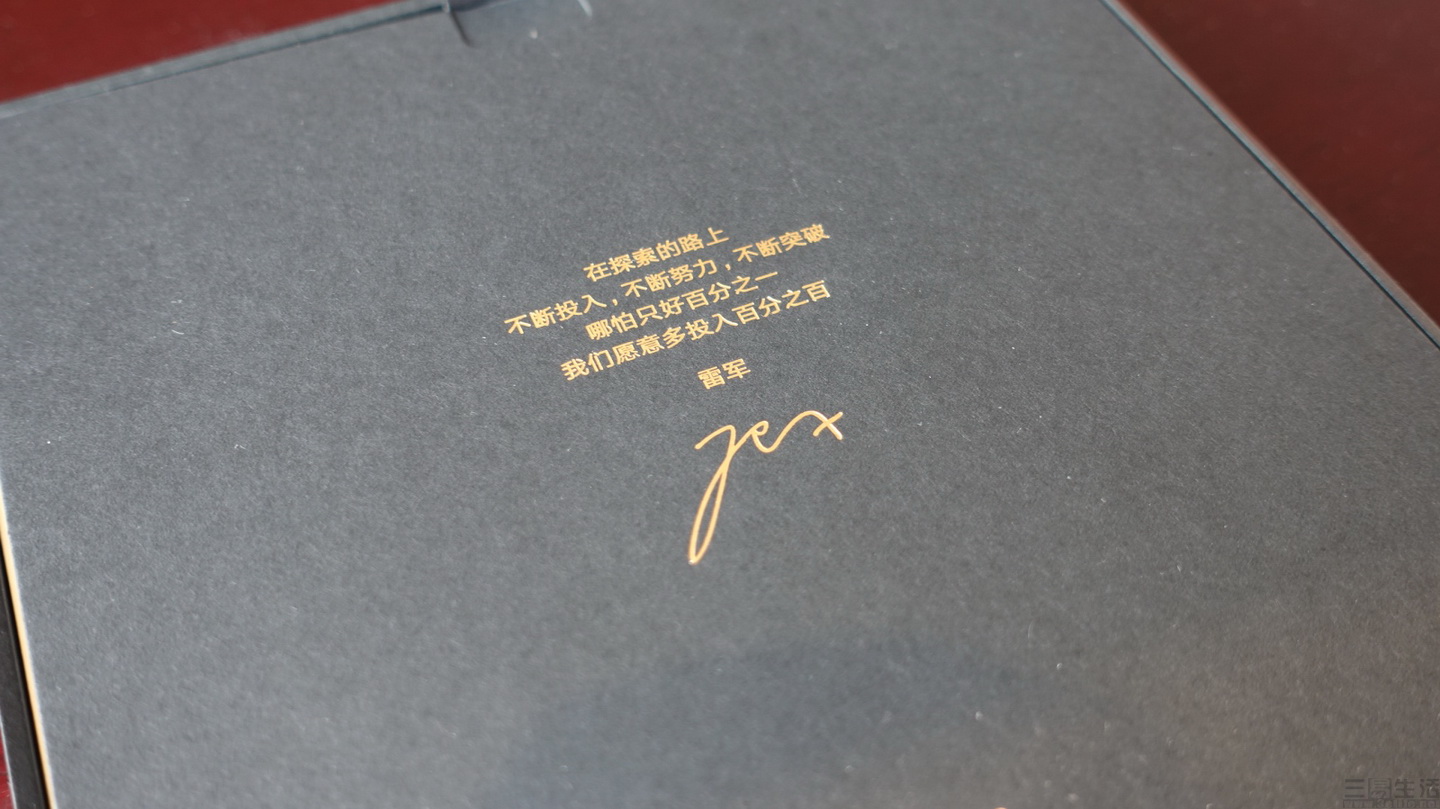 打开盒子,映入眼帘的是雷军签名的问候语:“为了1%的提升,愿意投入100%”,这句话呼应了发布会上对于骁龙845高成本的解释,同时也是小米近年来MIX系列不断自我突破的写照。