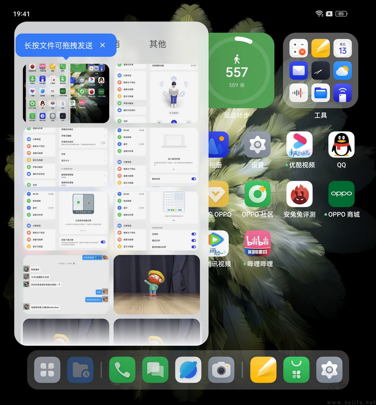 针对这一点,Find N3此次首先是设计了一个类似PC逻辑的“任务栏”,它不仅有可以在任何界面上都能呼出的“开始菜单”,甚至还有一个逻辑类似Windows 11的“最近使用过文件”的单独快捷方式。方便用户随时查看最近打开过的文档、图片,或是对它们进行分享操作。