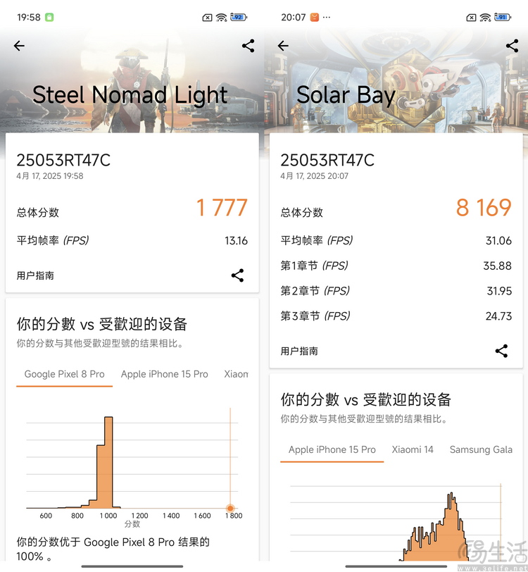 作为对比的第三代骁龙8机型性能